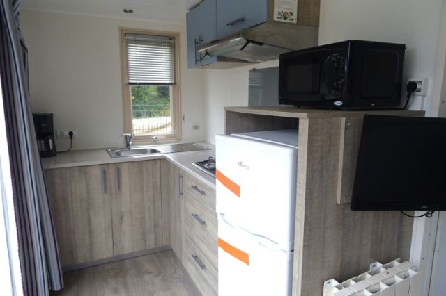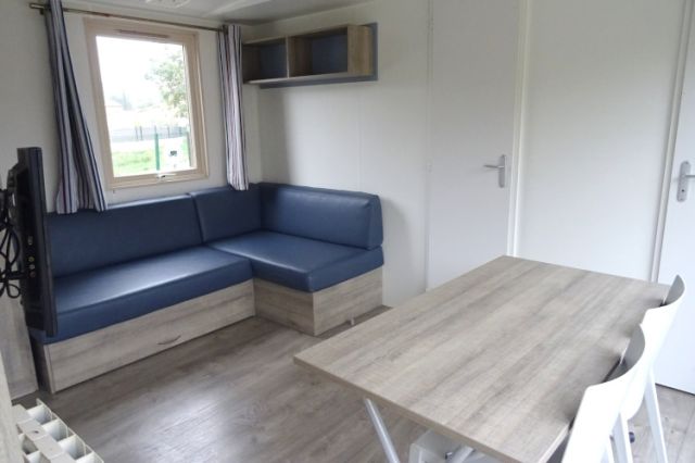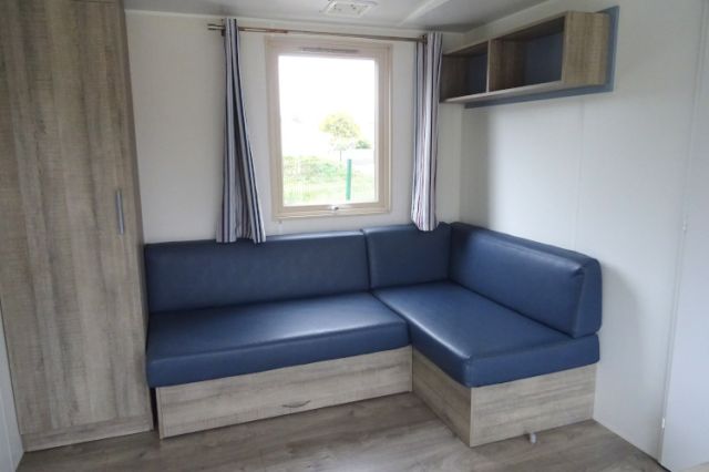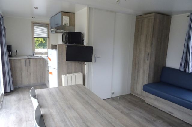 A SAISIR! Mobil home IRM modèle MONTAGNE, en 2 chambres; Bardage bois, avec une façade verte. Toit plat, double vitrage. Double entrée coulissante, apportant une belle luminosité à l'intérieur; Coin repas, avec un banquette en L; La cuisine est toute équipée, avec réfrigérateur-congélateur, micro-ondes, hotte, cafetière...2 chambres, disposant de caissons de rangement, chevet et penderie, avec convecteur supplémentaire. Salle d'eau avec meuble sous vasque, douche, sèche serviettes et WC. Modèle spécifique Tour Operateur, avec de nombreuses options, ainsi qu'une isolation montagne. Mobil home avec de belles finitions et de beaux volumes. Transport inclus 50 km, TVA récupérable.
