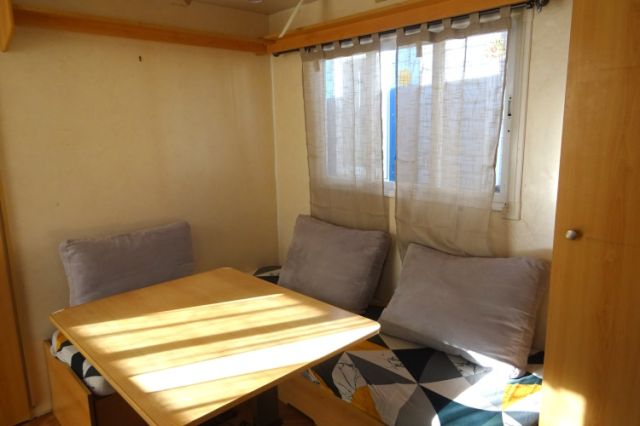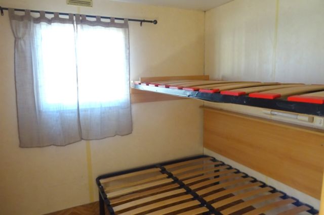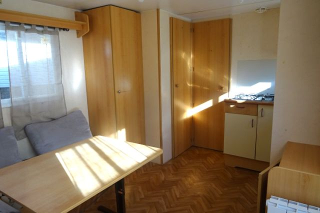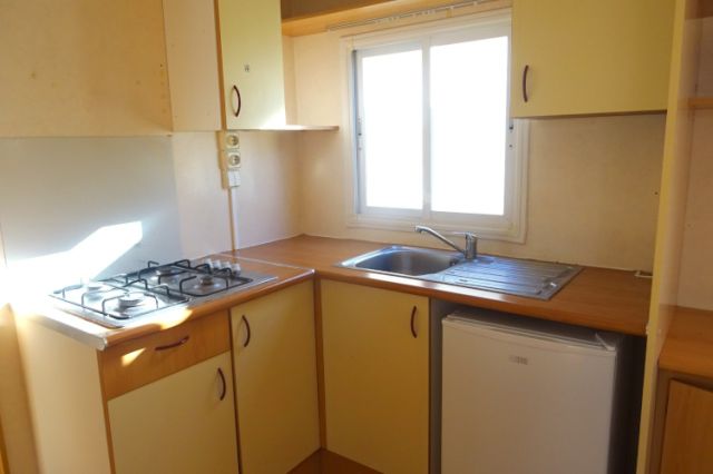MOBIL HOME FAIBLE ENCOMBREMENT. ROLLER, modèle 760 en 2 chambres; 7.60 X 3 M. Double pente, simple vitrage. Implantation centrale, avec coin repas disposant d'une banquette en L; Cuisine équipée. 2 chambres dont 1 avec lit superposé; Les chambres ont tablettes et penderie. Salle d'eau avec douche. WC séparé. Petit prix pour ce produit qui sera idéal pour loger un saisonnier ou un gardien; Transport inclus 50 km, TVA récupérable. A voir rapidement !!!