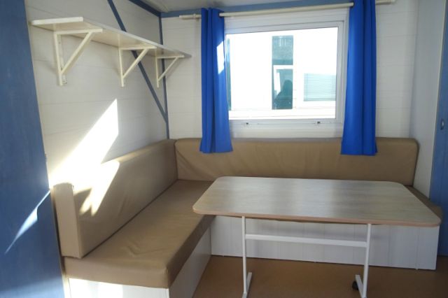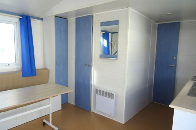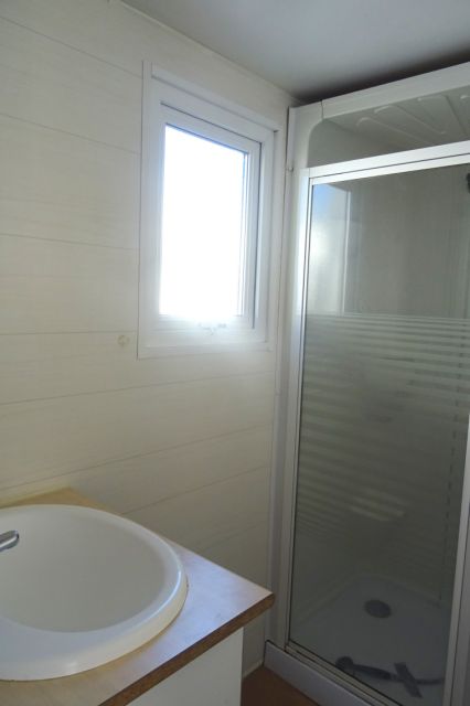 A SAISIR! OHARA 714 en 2 chambres; Bardage blanc, double pente et double vitrage. L'entrée donne sur l'espace jour: coin repas avec banquette, cuisine équipée. 2 chambres, avec rangements, penderie et convecteur supplémentaire. Salle d'eau avec meuble sous vasque et douche. WC séparé. Transport inclus 50km, TVA récupérable.