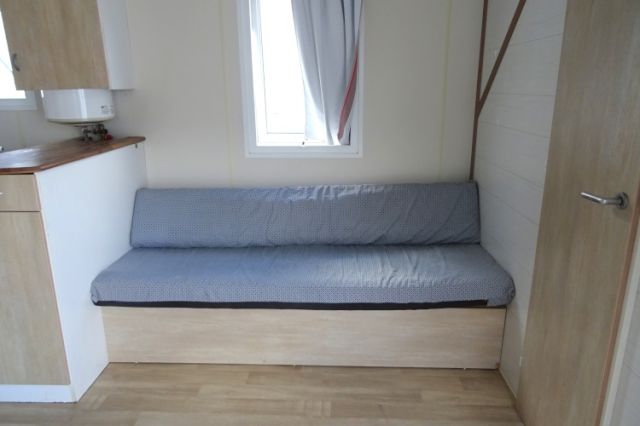 A SAISIR Mobil home OHARA en 2 chambres; Bardage PVC blanc, double pente et double vitrage. Espace jour avec coin repas indépendant, cuisine équipée et coin salon. 2 chambres, disposant de penderie et rangements; Salle d'eau avec douche; WC séparé. Beaucoup de luminosité. Dispose d'une terrasse intégrée. Transport inclus 50 km; TVA récupérable.
