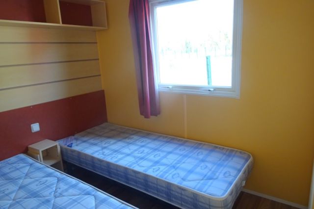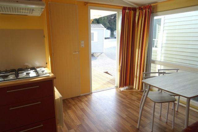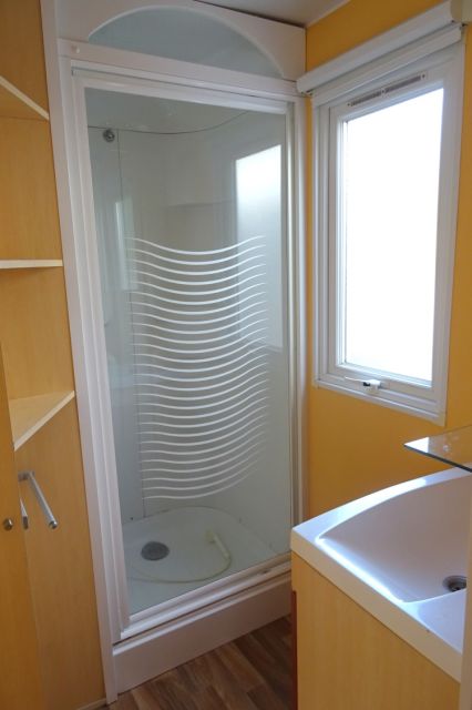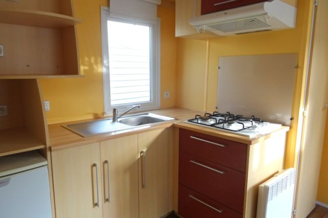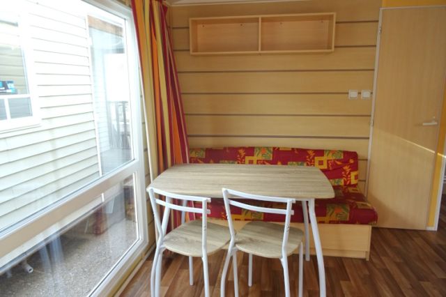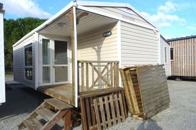 IRM modèle LOGGIA en 2 chambres; Bardage PVC crème, double pente et double vitrage. Une terrasse intégrée avec son extension pour profiter des extérieurs. Une belle entrée donnant sur l'espace jour, très lumineux avec sa baie vitrée. Coin repas avec banquette et cuisine équipée ( frigo top, hotte). 2 chambres avec caissons de rangement, chevet et penderie. Salle d'eau avec tablette, meuble sous vasque et douche. WC séparé. Mobil home avec de beaux volumes. Le +: terrasse avec extension. A voir ! Transport inclus 50 km, TVA récupérable.