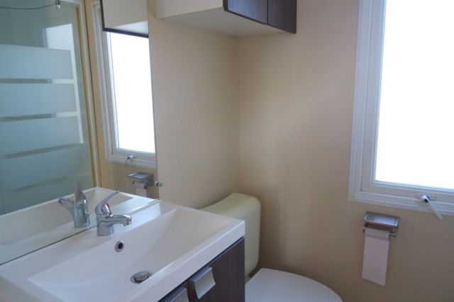 Rare ! mobil home OHARA avec mezzanine, pouvant recevoir jusqu'à 8 personnes. Très lumineux, avec de beaux volumes. Une entrée double donnant sur l'espace jour: Salon avec tables basses et rangements; Coin repas indépendant; Belle cuisine équipée avec hotte, réfrigérateur-congélateur et retour bar. D'un coté la chambre parentale qui dispose de chevets, caissons , penderie, et d'une salle d'eau privative ( meuble sous-vasque, rangements, douche et WC). De l'autre coté, deux chambres équipées de chevets, rangements et penderie. Une 2ème salle d'eau avec douche; 2ème WC séparé. Partant de l'espace jour, un escalier mène à la mezzanine, aménagée en espace chambre pouvant accueillir 2 lits. Les finitions sont soignées, l'ambiance très contemporaine. Equipé clim. Confort, espaces XXL, luminosité, intimité de la grande suite parentale, implantation conviviale : De belles prestations pour maximiser ce mobil home. Transport inclus 50 km.