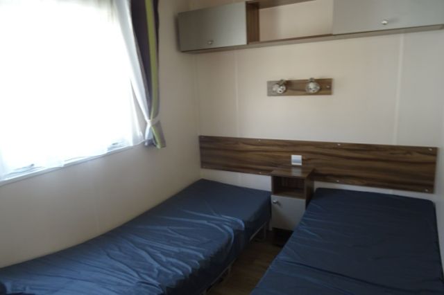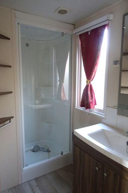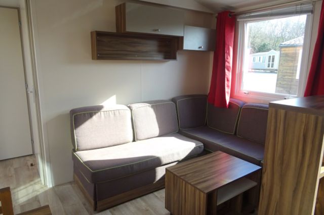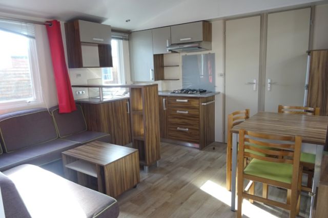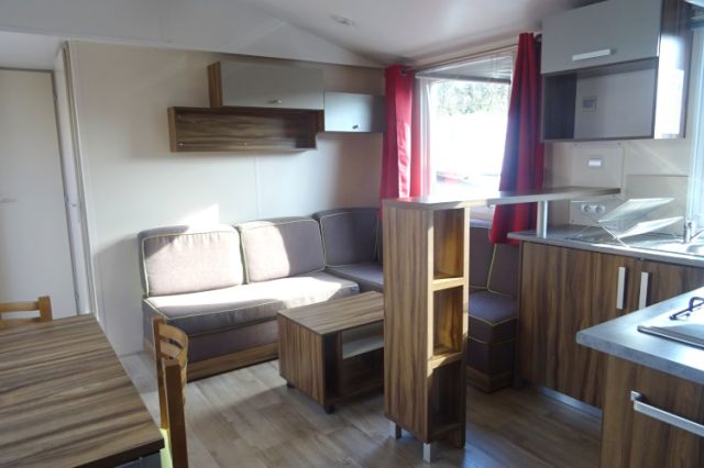NOUVEAU sur notre parc: Mobil home gamme luxe en 2 chambres. Bardage bois, isolation montagne; Un intérieur chaleureux, avec de belles finitions: Salon, coin repas indépendant et une cuisine toute équipée; Meubles d'appoint et rangements nombreux. 2 belles chambres avec chevets, penderie et aussi caissons de rangement; La salle d'eau dispose de douche, tablettes et meuble sous vasque. WC séparé. Mobil home très confortable disposant d'une isolation montagne. A voir; Transport inclus 50 km.