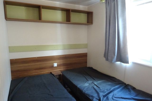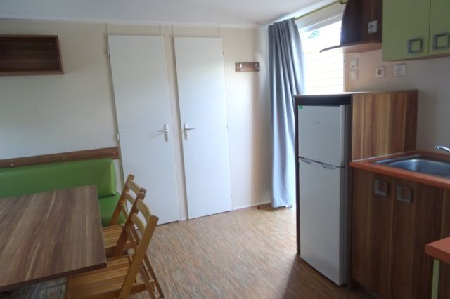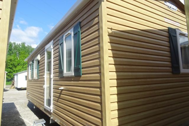 Mobil home IRM modèle SUPER TITANIA 3, en isolation renforcée. Bardage PVC couleur bois, double pente et double vitrage. Une belle entrée donnant sur l'espace jour: Coin repas avec banquette en L; Cuisine équipée, avec hotte et réfrigérateur-congélateur. 3 chambres, équipées de tablettes, penderie et caissons de rangement. Les chambres disposent de convecteur complémentaire. Salle d'eau avec douche, meuble sous vasque et convecteur. Beaux volumes et de belles finitions. Le + : Isolation renforcée. A voir. Transport inclus 50 km; TVA récupérable.