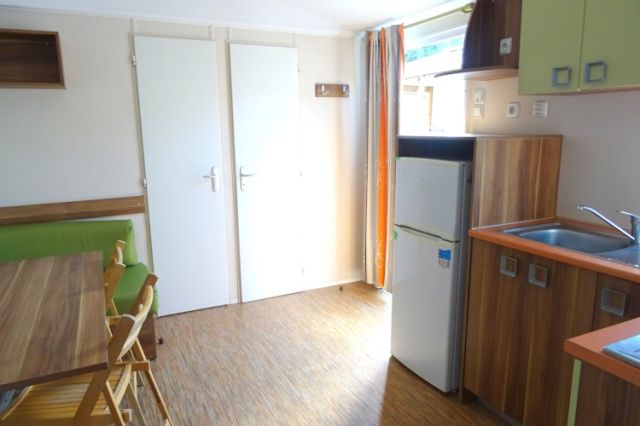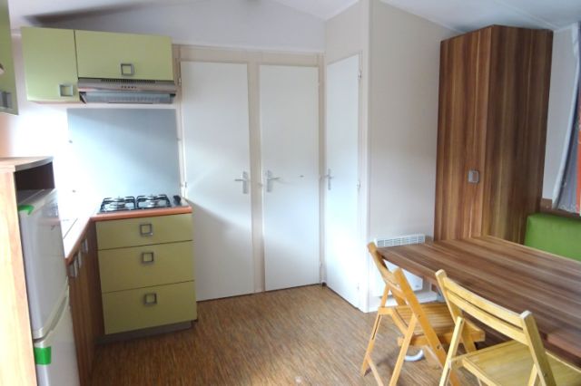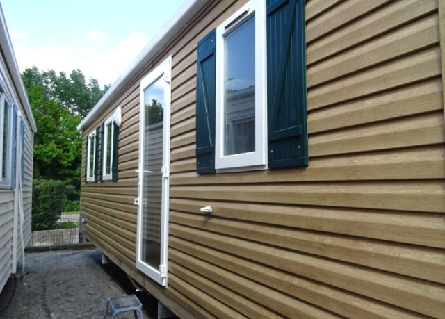 Mobil home IRM modèle SUPER TITANIA 3, en isolation renforcée. Bardage PVC couleur bois, double pente et double vitrage. Une belle entrée donnant sur l'espace jour: Coin repas avec banquette en L; Cuisine équipée, avec hotte et réfrigérateur-congélateur. 3 chambres, équipées de tablettes, penderie et caissons de rangement. Les chambres disposent de convecteur complémentaire. Salle d'eau avec douche, meuble sous vasque et convecteur. Beaux volumes et de belles finitions. Le + : Isolation renforcée. A voir. Transport inclus 50 km; TVA récupérable.