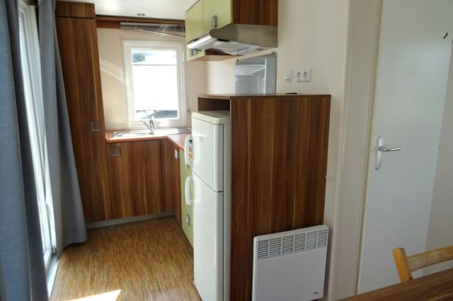 A VOIR! IRM Super mercure modèle Riviera. Bardage PVC couleur bois, double pente et double vitrage. Une entrée donnant sur l'espace jour, avec coin repas pouvant être indépendant, et coin salon. Une double porte vitrée s'ouvre sur la cuisine, apportant une belle luminosité; La cuisine dispose d'un réfrigérateur-congélateur, d'une hotte ainsi que de nombreux rangements. 2 belles chambres, avec chevets, rangements et penderie; Convecteur supplémentaire dans les 2 chambres; Salle d'eau avec meuble sous vasque, douche, tablettes de rangement et convecteur. WC séparé. Mobil home très lumineux et fonctionnel; Le plus: Isolation renforcée. Transport inclus 50 km; TVA récupérable.