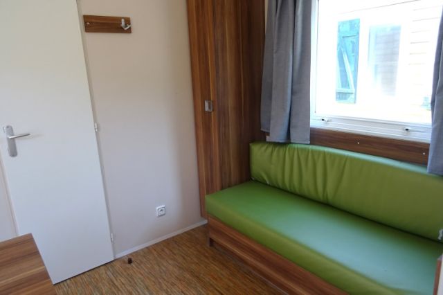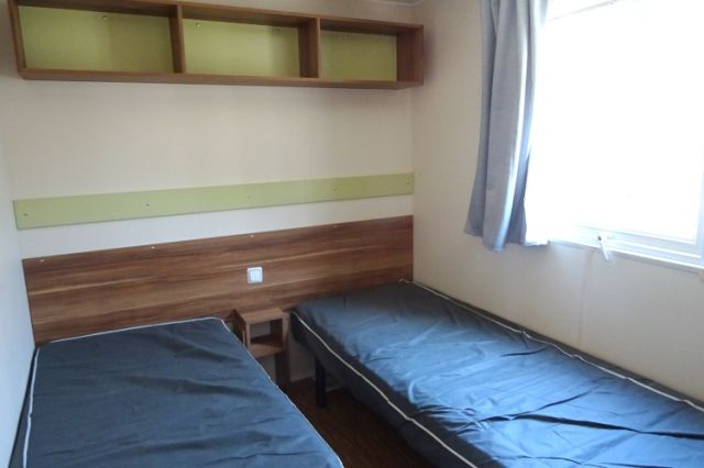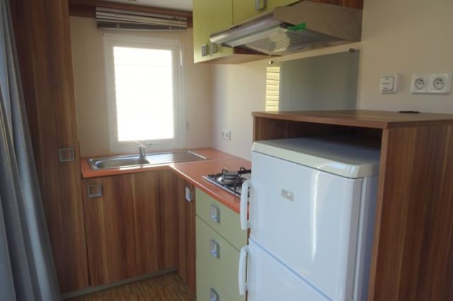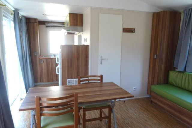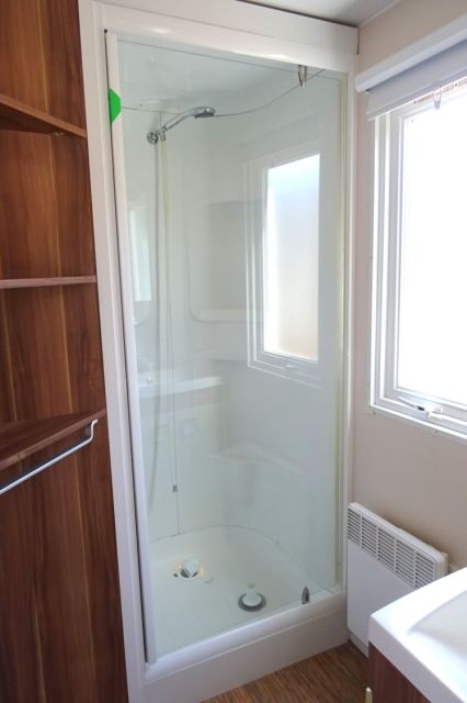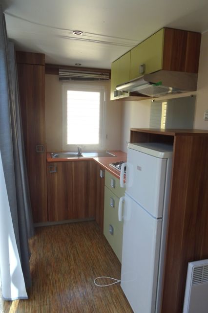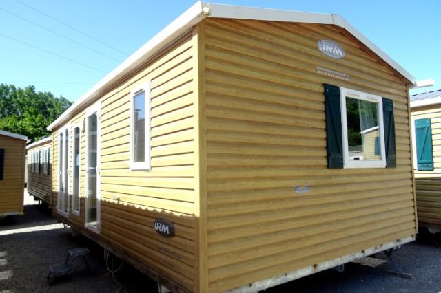 IRM Super mercure modèle Riviera. Bardage PVC couleur bois, double pente et double vitrage. Une entrée donnant sur l'espace jour, avec coin repas pouvant être indépendant, et coin salon. Une double porte vitrée s'ouvre sur la cuisine, apportant une belle luminosité; La cuisine dispose d'un réfrigérateur-congélateur, d'une hotte ainsi que de nombreux rangements. 2 belles chambres, avec chevets, rangements et penderie; Convecteur supplémentaire dans les 2 chambres; Salle d'eau avec meuble sous vasque, douche, tablettes de rangement et convecteur. WC séparé. Mobil home très lumineux et fonctionnel; Le plus: Isolation renforcée. Transport inclus 50 km; TVA récupérable.