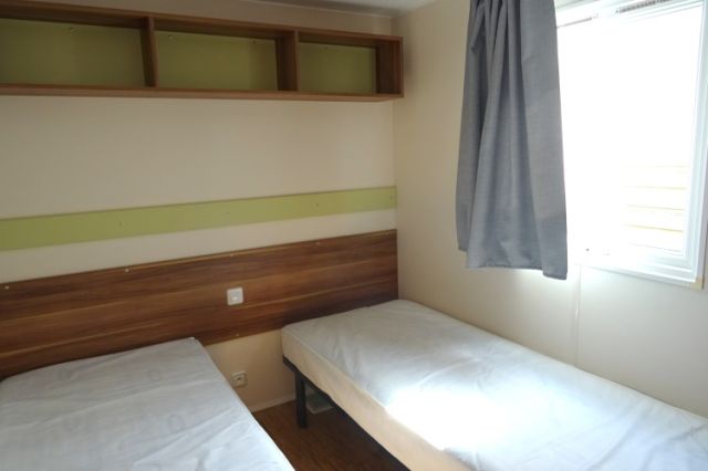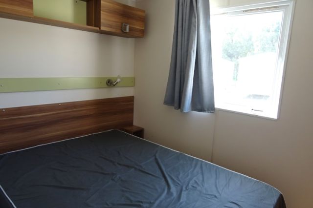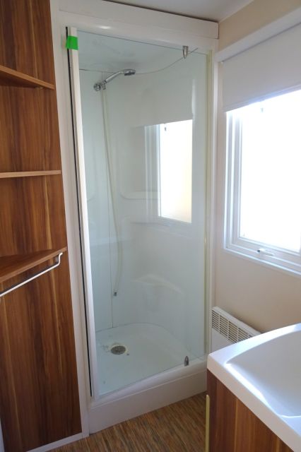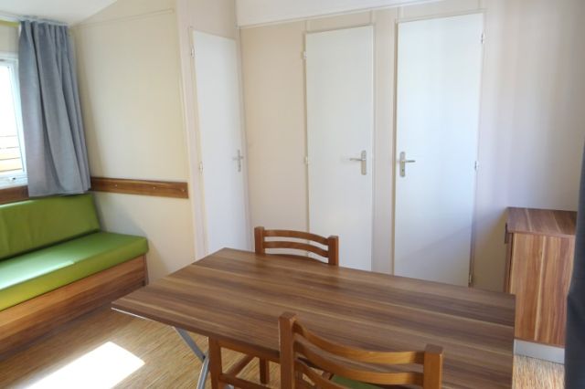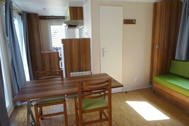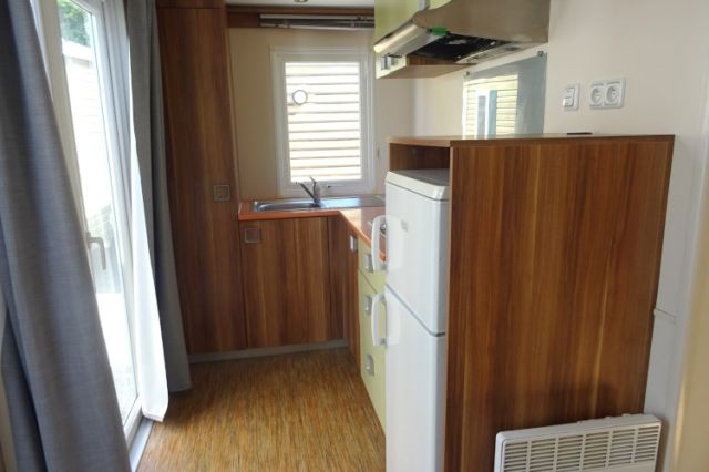 IRM Super mercure modèle Riviera. Bardage PVC couleur bois, double pente et double vitrage. Une entrée donnant sur l'espace jour, avec coin repas pouvant être indépendant, et coin salon. Une double porte vitrée s'ouvre sur la cuisine, apportant une belle luminosité; La cuisine dispose d'un réfrigérateur-congélateur, d'une hotte ainsi que de nombreux rangements. 2 belles chambres, avec chevets, rangements et penderie; Convecteur supplémentaire dans les 2 chambres; Salle d'eau avec meuble sous vasque, douche, tablettes de rangement et convecteur. WC séparé. Mobil home très lumineux et fonctionnel; Le plus: Isolation renforcée. Transport inclus 50 km; TVA récupérable.